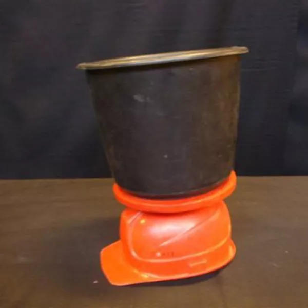 Gooi water in de emmer en zet de helm op je hoofd. Goed vast houden.