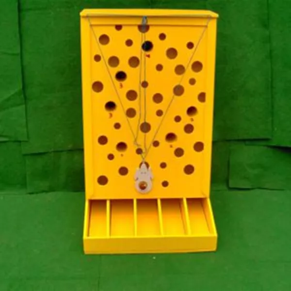 Probeer doormiddel van de touwtjes het balletje in de zo hoog mogelijke score te krijgen.