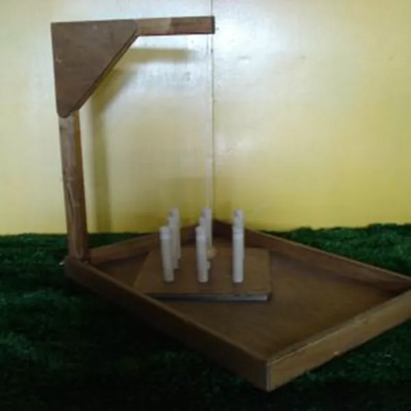 9 houten kegels.