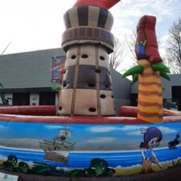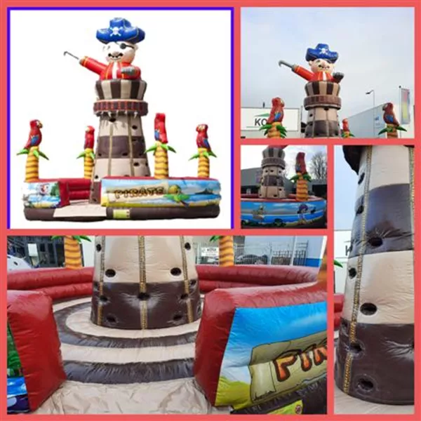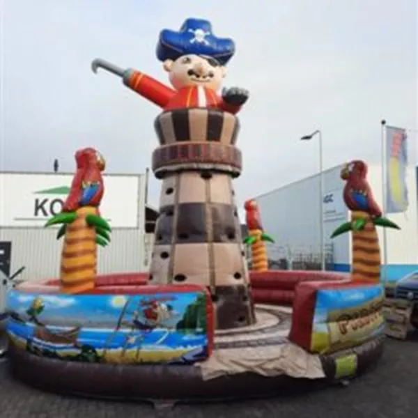 - Een geweldige eyecatcher op elk evenement: de klimtoren met piraat thema. Deze opblaasbare klimtoren is een echte aanrader. De kinderen moeten zo snel mogelijk naar boven proberen te klimmen om de zwaarden te pakken. Bovenop de klimtoren zit een opvallend 3D-object passend bij het thema. De klimtoren met piraat thema heeft onderaan de toren een valmat en een hoge opstaande rand die uitgerust zijn met leuke 3D-objecten. Binnen een kwartier opgezet