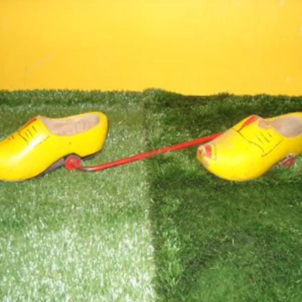 Klompen zitten aan elkaar door een beweegbare en draaiende stang.