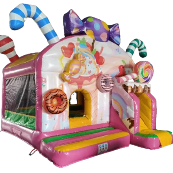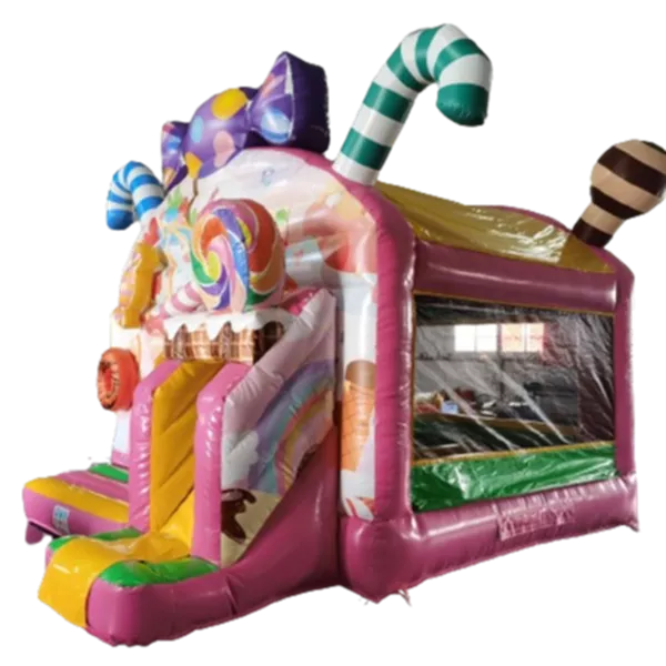 Beleef urenlang speelplezier op ons populairste springkussen uit het assortiment: Het luchtkussen heeft veel speelmogelijkheden met leuke objecten op het springvlak en een coole glijbaan. De Multiplay Candy heeft opvallende 3D objecten op het springkussen en het luchtkussen is passend bij het thema vormgegeven. Dit springkussen in het thema Candy maakt het feest van jouw klant helemaal compleet!