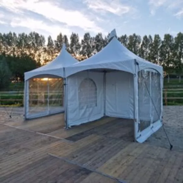 - De Pagodetenten van de Feestcentrale hebben een chique uitstraling met een hoog puntdak.