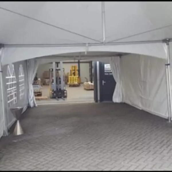 - De Pagodetenten zijn aan elkaar te koppelen en worden voorzien van gootjes zodat de overgang waterdicht is.