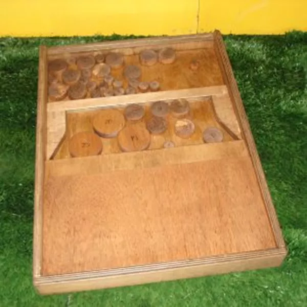 Leg alle schijven in de grote bak. (dat is de bak met het schuifgedeelte).
