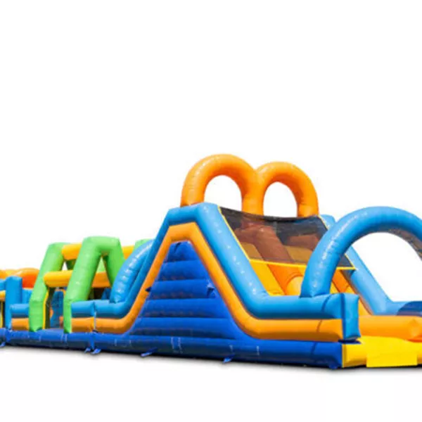 Deze 27 meter lange stormbaan geleverd in vrolijke kleuren is perfect om jouw klanten een spannende en super leuke dag te bezorgen! Laat ze vliegensvlug kruipen, rennen, springen, klimmen en glijden op dit dubbele parcours. Wie bereikt als eerste de overkant van deze opblaasbare hindernisbaan? De dubbele stormbaan biedt extra vermaak doordat er niet één, maar twee afzonderlijke banen zijn aangebracht. Dat wordt één groot feest voor de deelnemers!