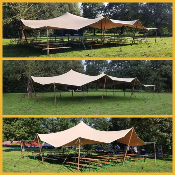 - Voor het opzetten van de stretchtent dient u 1,5 tot 2 meter rondom extra ruimte te rekenen voor het afspannen van de stretchtent.