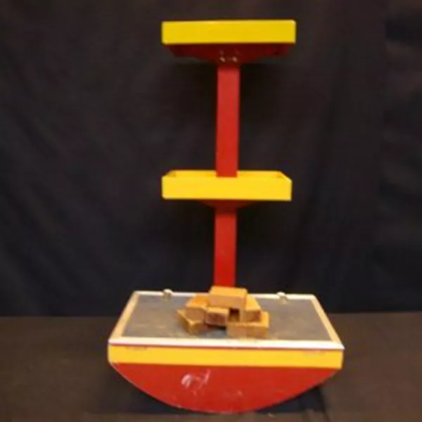 Ga met de voeten op het plateau staan en probeer in evenwicht te blijven en de houten blokjes op te stapelen.